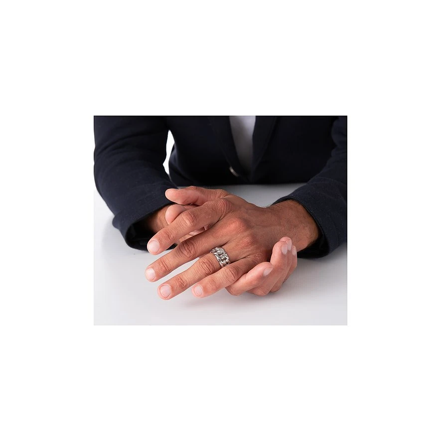 Massiv und bold: Dieser Männerring sorgt für eine rebellige Note. Sein markantes Design mit den breiten Gliedern tritt selbstsicher und rockig auf. Besonders schön ist der spiegelnde Effekt des polierten Edelstahls. Damit setzt FAVS auf eine wertige und zugleich coole Ausstrahlung. Zum Biker-Look, als Ergänzung zum casual Outfits oder als Party-Accessoire: Der charakteristische Ring macht alles mit.