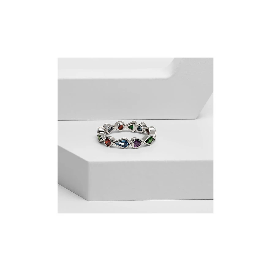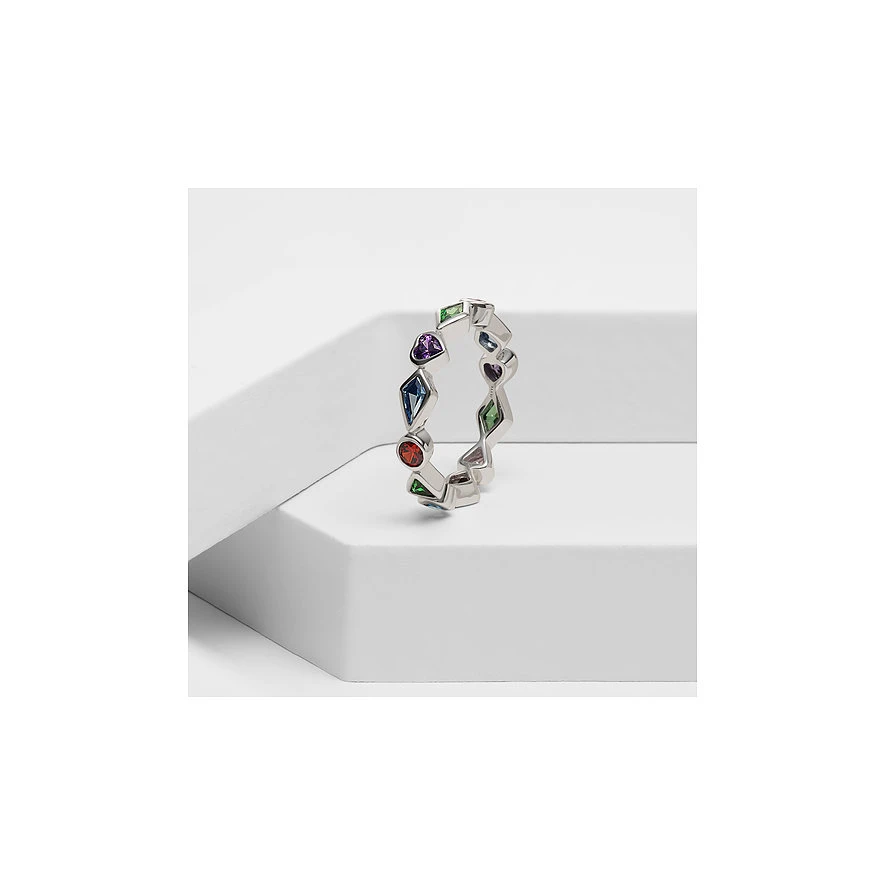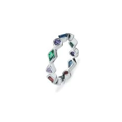 Ein leuchtendes Feuerwerk für deine Finger hat Designerin Jette Joop mit diesem Ring geschaffen. Hier setzen sich in glänzendes 925er Silber gefasste, verschieden farbige und verschieden geformte Zirkoniasteine zu einem echten Eyecatcher zusammen. Herzchen, Kreise, Dreiecke, Rauten und Drachenvierecke funkeln in Lila, Blau, Rosa, Grün und Rot und bringen bunte Leichtigkeit in all deine Looks. Sieht solo getragen umwerfend aus, setzt aber auch im Stacking mit weiteren Ringen ein Statement!