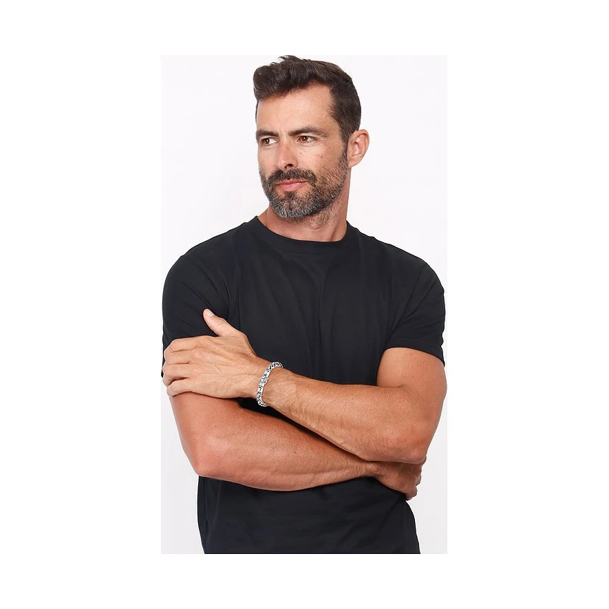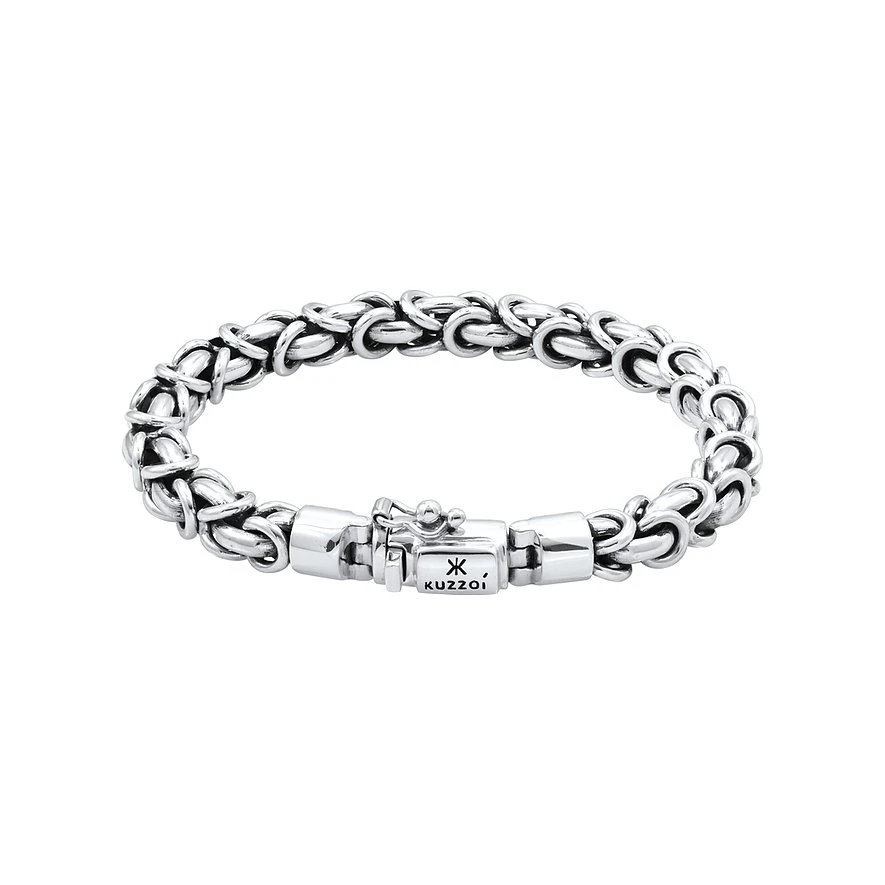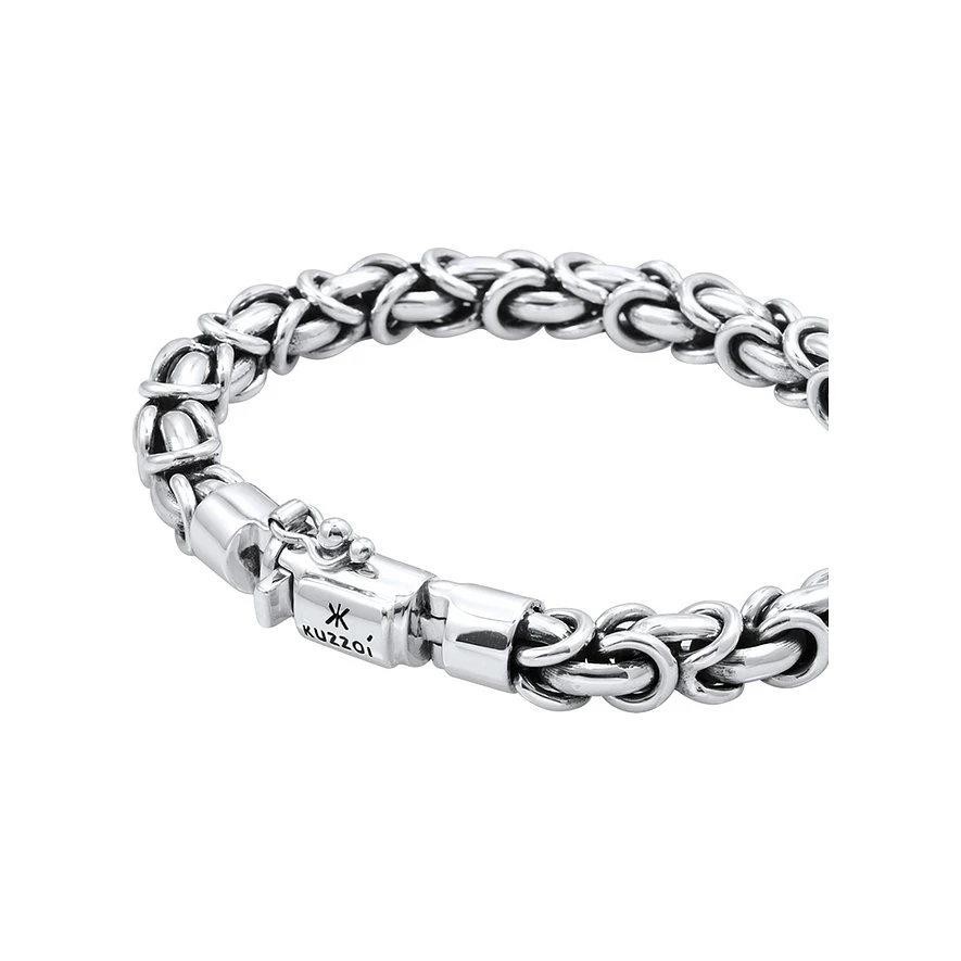 Das männliche Armband macht Laune. Es setzt sich charakterstark, robust und im modernen Glanz in Szene. Bei dem 925er-Silber-Armband fällt das massive Design ins Auge. Dazu kommt der aufwendige Style der Königskette. Damit stellt Kuzzoi das robuste Panzerarmband in den Mittelpunkt. An dem praktischen und zugleich attraktiven Steckverschluss ist das Markenemblem mit dem Namen eingraviert: ein selbstbewusstes Statement für Qualität und Biker-Charme.