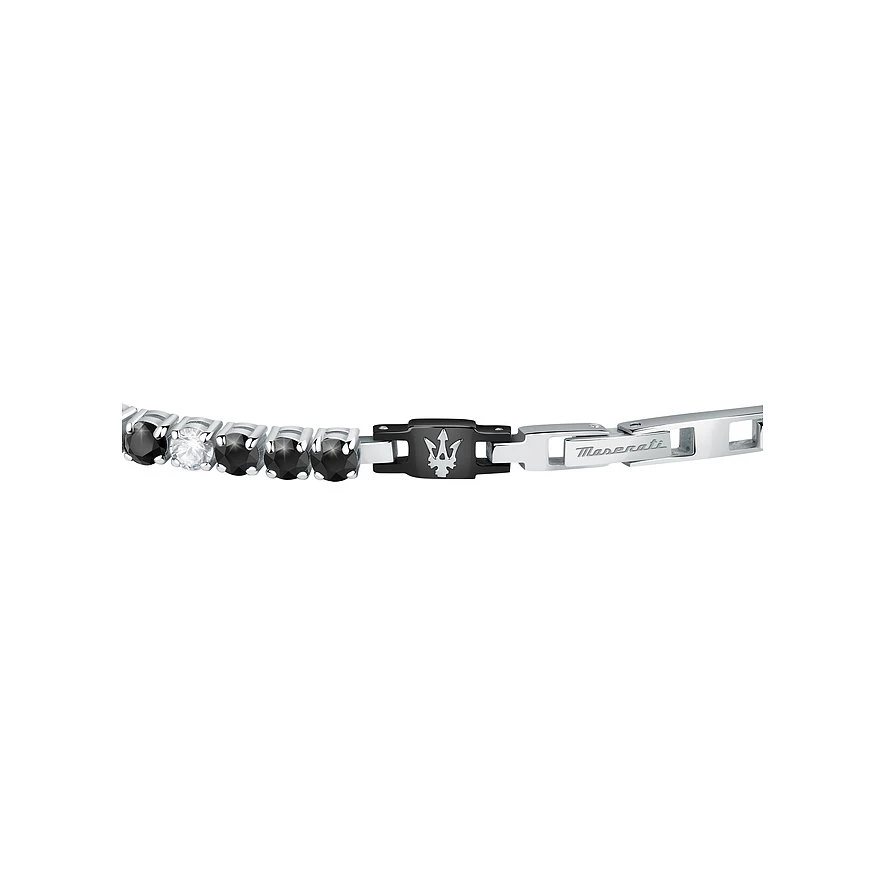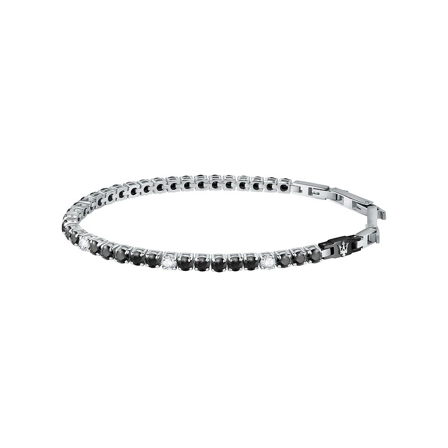 Mit besonderen Details wertet MASERATI den edlen Look des Armschmucks auf. Das Tennis-Armband aus poliertem Edelstahl ist mit schwarzen Zirkonia-Steinen besetzt, zwischen denen in gleichmäßigem Abstand weiße Farbsteine funkeln. So bekommt das Understatement einen exklusiven Touch. Das Armband mit dem charakteristischen Dreizack-Logo präsentiert sich als unkompliziertes Multitalent. Zum seriösen Anzug oder zum legeren Auftritt – it’s always a match.