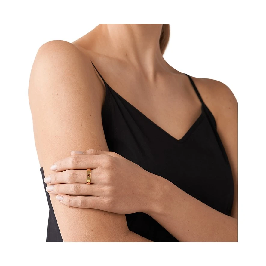 Hübsche Idee, charmant in die Realität umgesetzt: Bei diesem Ring macht Michael Kors seine Initialen zum schmuckvollen Detail. Der breite Damenring aus vergoldetem und poliertem Silber ist mit kleinen, runden Löchern versehen, in denen das bekannte MK auftaucht. Mit der glänzenden Oberfläche sieht dieser Look interessant und edel aus. Das originelle Design wirkt dabei absolut entspannt, denn die klare Linie bleibt.