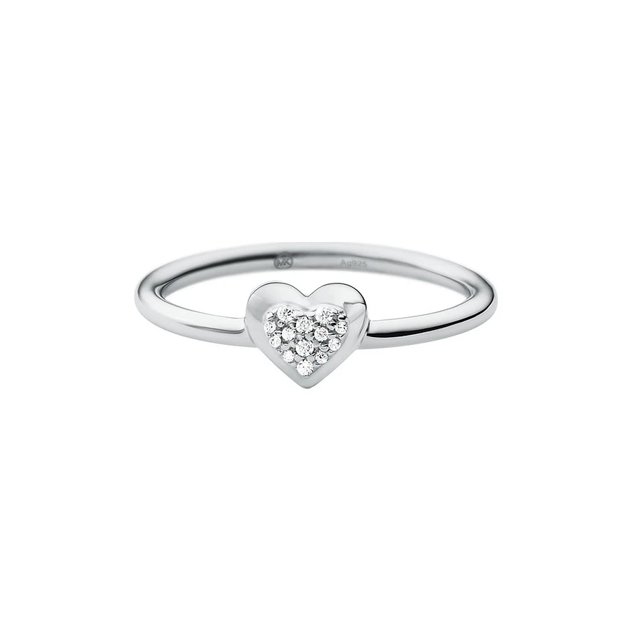 Wie schmeichelhaft Schmuck doch sein kann – und wie verliebt er macht: Der moderne 925er Silberring begeistert auf den ersten Blick. Grund dafür ist das kleine Herz, das den glänzenden Ring ziert. Weiße Steinchen bringen das Symbol der Liebe zum Leuchten. Über die hübsche Kreation von Michael Kors freuen sich die Frauen besonders, und so strahlen sie mit dem Zirkonia-Ring um die Wette.