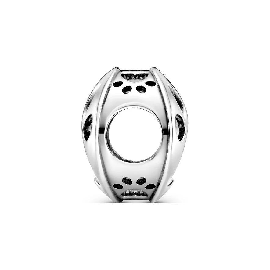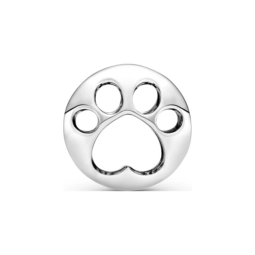 Den Mittelpunkt bei diesem Charms-Anhänger bildet die große Tatze, die als Öffnung gestaltet ist. Der Blick auf das passende Armband, das seitlich hindurchführt, bleibt also frei. Dadurch wirkt das glänzende Pandora-Schmuckstück aus Silber modern und offen. Am Außenrand ziehen sich kleine Tatzen entlang, die ebenfalls als Öffnungen im Edelmetall gefertigt sind. Dies unterstreicht die spielerische Note.