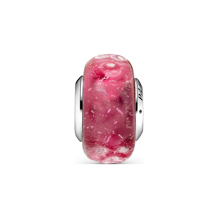 Leichte Vertiefungen verleihen dem Farbstein in Pink eine organische Wirkung. Auch die besondere Struktur der Oberfläche betont diesen Charakter. Der markante Charms-Ring strahlt Stilbewusstsein und Raffinesse aus. Um die runde Öffnung für das Charms-Armband zieht sich ein schlichter, glänzender Ring aus 925er Silber, der neben dieser Kennzeichnung den Schriftzug von Pandora trägt.