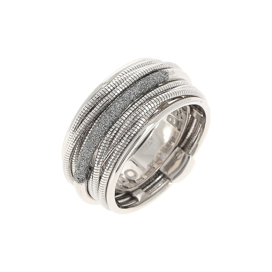 Detailreiches Design und eine aufregende Formensprache machen diesen Damenring von Pesavento zu einem echten Blickfang. Der Ring besteht aus mehreren geschickt zusammengefügten Silberdrähten, die organische Form und mechanische Optik kombinieren. Dazwischen sitzt ein breiteres Element, das mit Glitzerpartikeln bestreut wurde und so ein Feuerwerk aus kleinen Lichtblitzen an Ihren Finger zaubert. Die Redaktion empfiehlt, diesen auffälligen Ring als pièce de résistance zu einem dunklen, schicken Abendoutfit zu tragen.