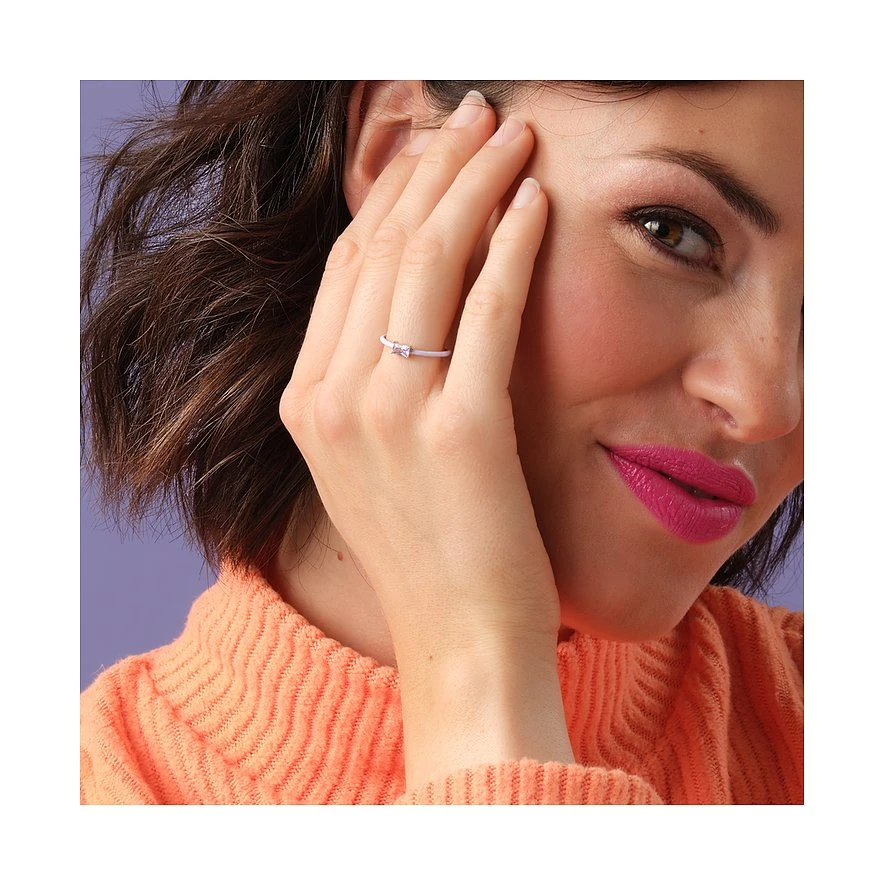 The power of simplicity! So einfach und dennoch so genial: Vergoldetes 925er Silber trifft an diesem Ring auf Emaille in einem zarten Pastellton, dazu passend sorgt ein lavendel farbiger Zirkonia-Stein im angesagten Baguette-Schliff für einen fröhlichen Frische-Kick. Besonders aufregend wirkt dieser Ring im Stacking mit seinen andersfarbigen Kollegen. Am besten direkt ausprobieren!