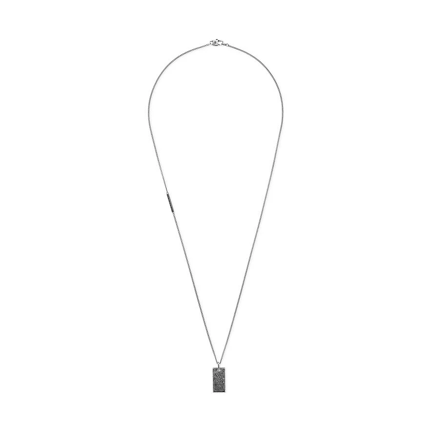 Unlike the normal. Die Mode der anderen ist Ihnen gleichgültig. Ihr Herz schlägt für das Besondere. Genau daraus wächst die Begeisterung für den Halsschmuck von UNSAME. An der Vintage-Kette hängt ein gebürstetes und gekratztes Plättchen, das authentisch und einzigartig auftritt. Der 925er Silberschmuck strahlt Ruhe und Stilsicherheit aus. Mit ihrer langen Form ist die Halskette absolut freizeittauglich.